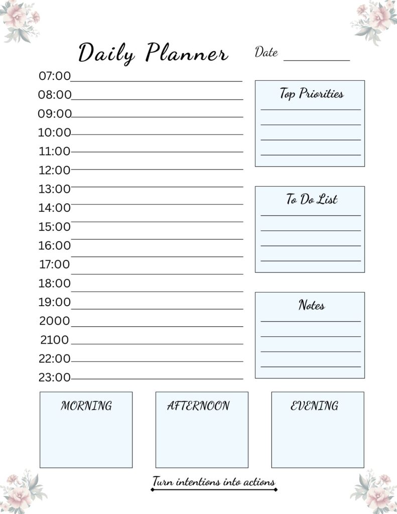 The Daily Planner: For those who need maximum focus. It includes an Hourly Schedule (07:00 – 11:00) for time-blocking, plus specific sections for Afternoon and Evening tasks to help you manage your energy levels.